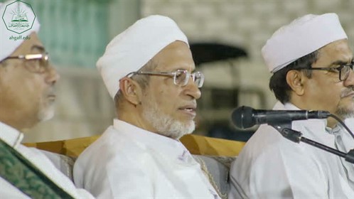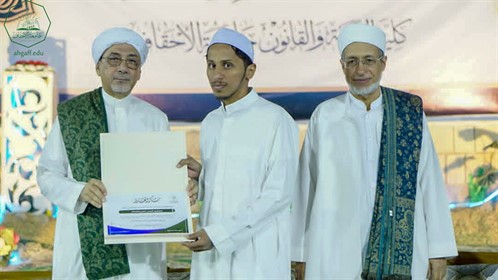 In the presence of the Professor Al-Habib Abdullah bin Muhammad Baharoon, President of Al-Ahgaff University, Al-Habib Alawi bin Abdul Rahman bin Abdullah bin Abi Bakr Al-Attas, member of the University’s Board of Trustees, Sheikh Muhammad bin Ali Al-Khatib, Dean of the Faculty of Sharia and Law, Dr. Abdullah Awadh bin Sumait, and the faculty, staff and students.