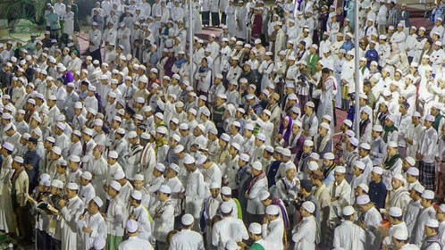 The ceremony included reading the biography of Samat Al-Durar for Al-Habib Imam Ali bin Muhammad Al-Habashi, which was interspersed with religious chants and Hadrami and Indonesian melodies.