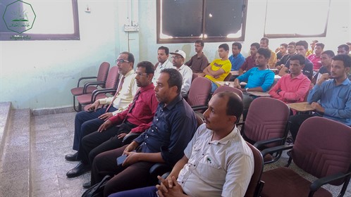 The lecture was attended by the Vice President of the University, Prof. Sadeq Omar Maknoon, the Dean of the Faculty of Computer, Dr. Hassan Abdel Muttalib Mugaibel, the Dean of the Faculty of Arts, Dr. Hussein Al-Aidarous, the Head of the Information Technology Department, Dr. Muhammad Wahdeen, and the Director of Activities, Mr. Muhammad Salem Al-Buri.