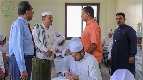 On the morning of Monday, January 15, Professor Sadiq Maknoon, Vice President of Al-Ahgaff University, toured the examination halls to inspect the environment prepared for department students, out of his keenness to overcome all the difficulties facing students during the examination process. He also praised the deanship of the faculty for their coordination of this examination process, which evaluates the academic achievement of each student.