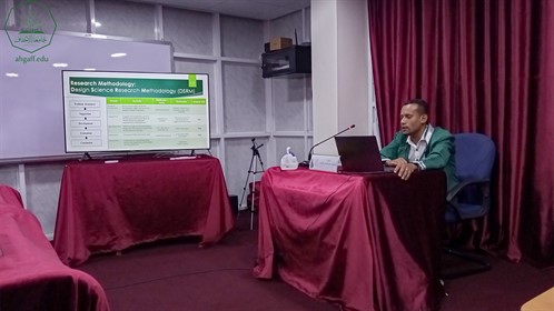 In the presence of the Head of the Information Technology Department, Dr. Hassan Abdulmutallab Muqaibel, Head of the Information Technology Department at the College of Graduate Studies, Al-Ahgaff University