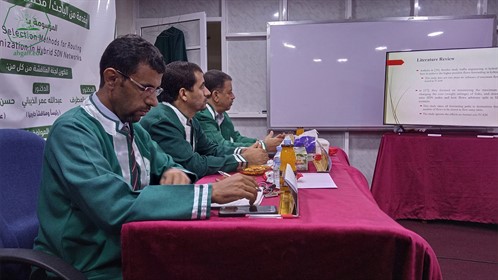 The researcher Muhammad Khaled Salem Al-Bakri obtained a master's degree in information technology from the Faculty of Postgraduate Studies at Al-Ahgaff University, Department of Information Technology, for his thesis titled "Path selection methods for routing optimization in hybrid SDN Networks"