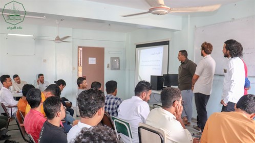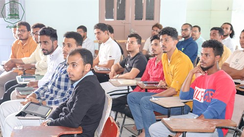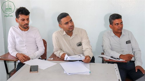 On Tuesday, January 23, a discussion of graduation research plans for fourth-level students in the Department of Accounting was held at the Faculty of Administration and Economics, where the students were discussed by the discussion committee, which consisted of the Dean of the Faculty, Mr. Alawi Abdul Qader Al-Aidaroos, and faculty members, Mr. Ahmed Mahmoud Bahumaid, and Mr. Ahmed Muhammad. Baaqeel.