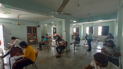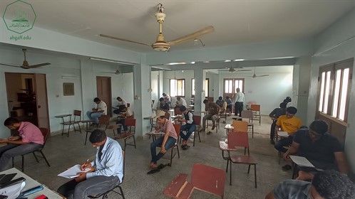 The Dean of the Faculty, Mr. Alawi Abdel-Qader Al-Aidarous, supervised the progress of the exam, which is held for the first time in the faculty, and includes approximately 80 questions in the subjects of Principles of Accounting and Intermediate Accounting in Arabic and English, which were prepared by a specialized committee in the faculty.