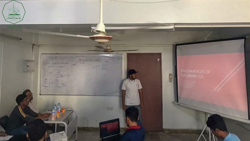 At the end of the presentations, Mr. Muhammad Salem Al-Buri gave a motivational speech to the students, thanking them for their diligence and good effort, and explained to them the most important observations to be focused on.