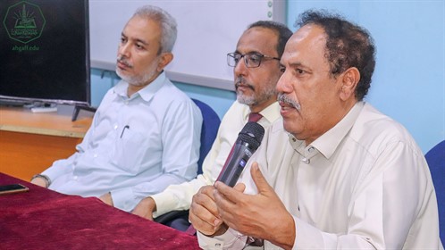 Next, Dr. Muhammad Alawi bin Yahya, a lecturer at the University of Aden, discussed the International Day of the Arabic Language, the fact that Arabic is the fourth most spoken language in the world, the phenomenon of students not wanting to pay attention to Arabic grammar in particular, and the existence of rabid and Masonic Orientalist campaigns to alienate people from Arabic. Additionally, he made the argument that teaching Arabic to students through citations from the Holy Qur'an gets them closer to the language's mastery.